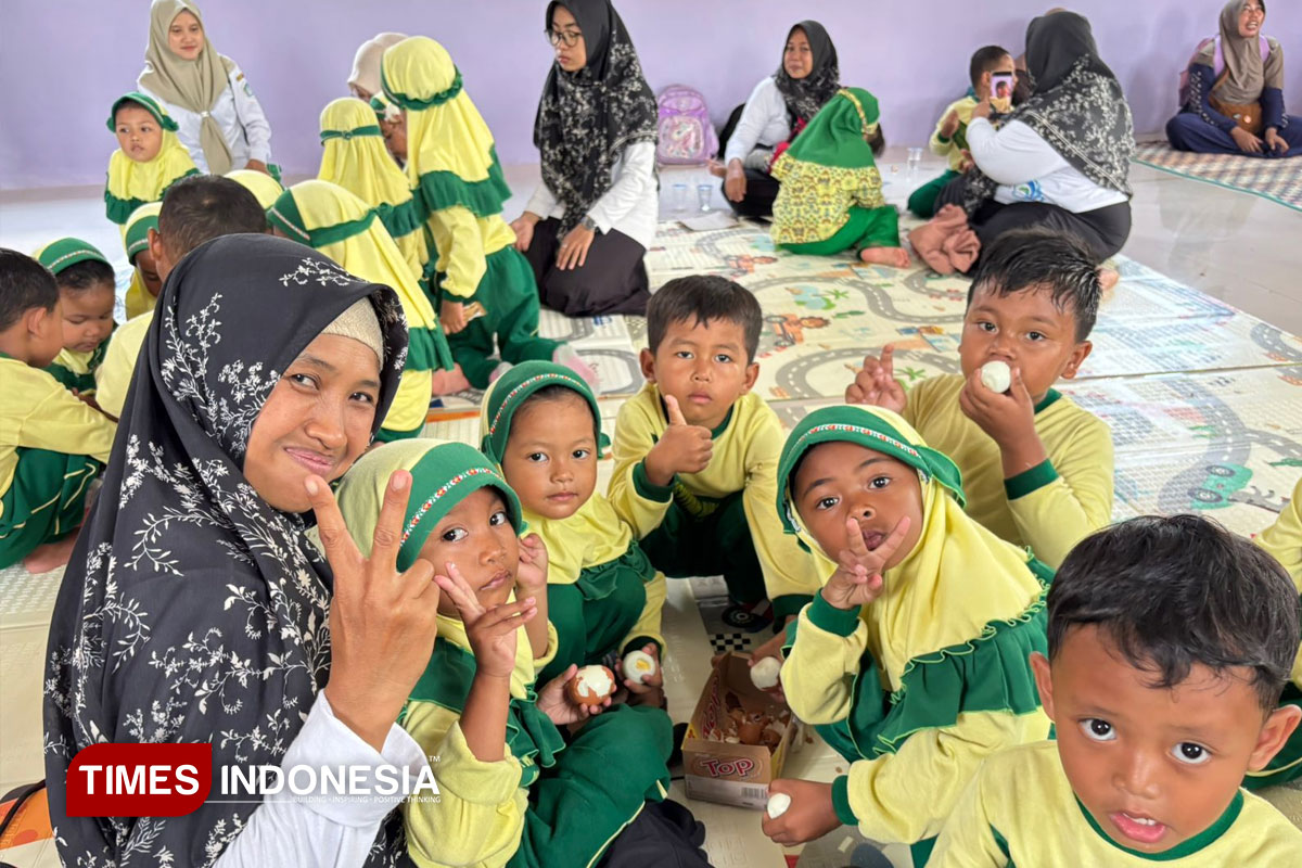 Suasana belajar luar ruangan terlihat di UPT Pembibitan Mantup pada Rabu (11/2/2026). Sebanyak 24 siswa dari TK Aisyiyah Kelas A berkesempatan mendapatkan pengalaman sebagai peternak cilik. Anak-anak ini diajak berinteraksi langsung dengan berbagai jenis hewan, mulai dari sapi, kambing, ayam, bebek, hingga kelinci.