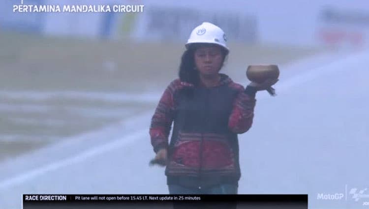 TIMES Lamongan/Raden Rara Isti Wulandari, sang pawang hujan saat Sirkuit Mandalika, Lombok Tengah, NTB, Minggu (20/3/2022) (FOTO: t-2.tstatic.net)